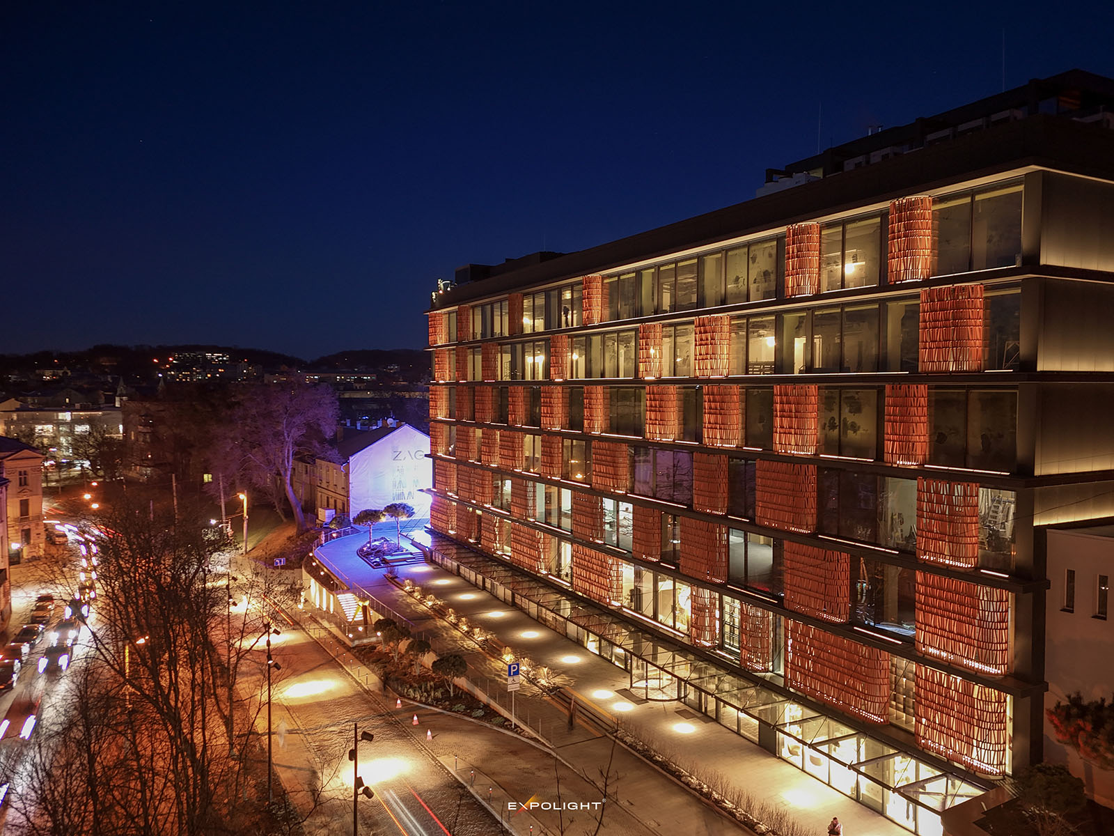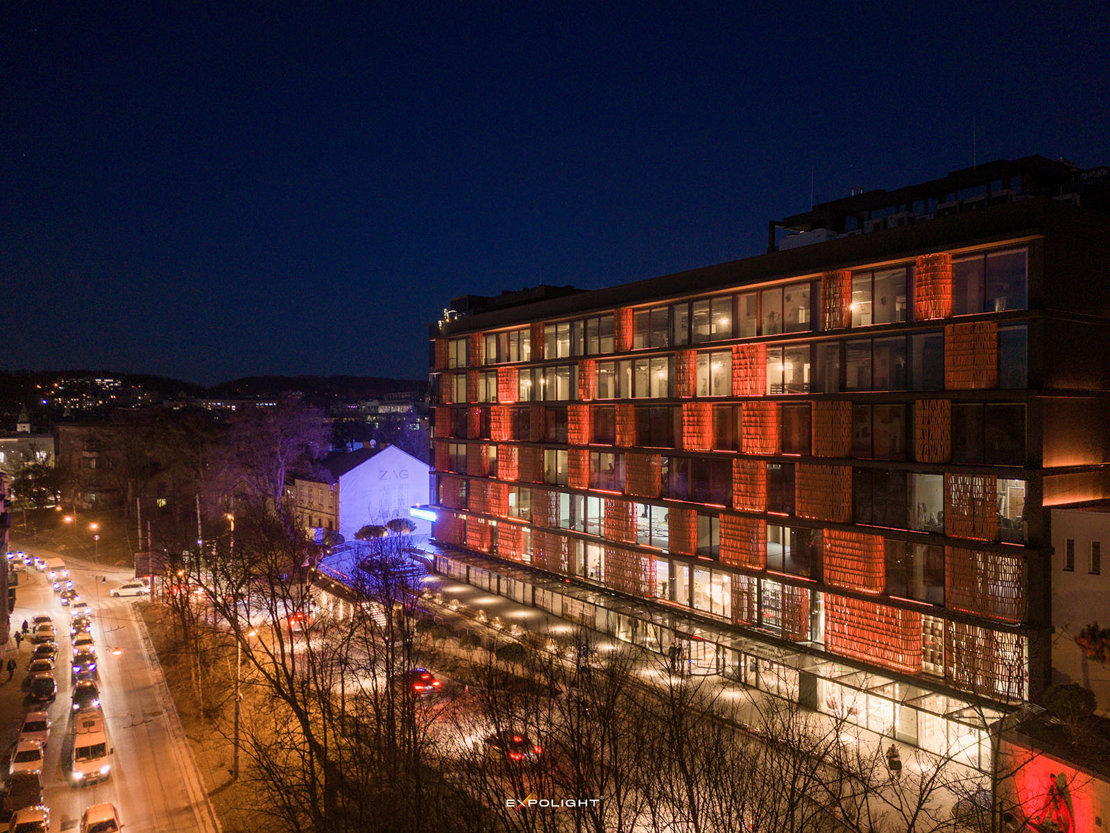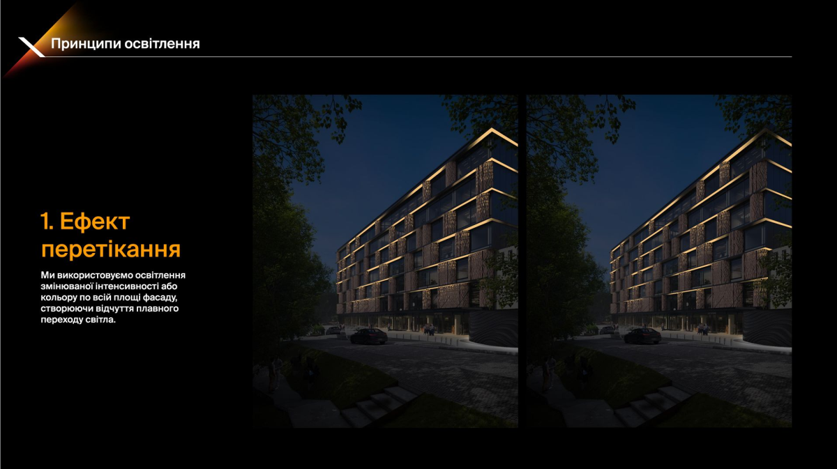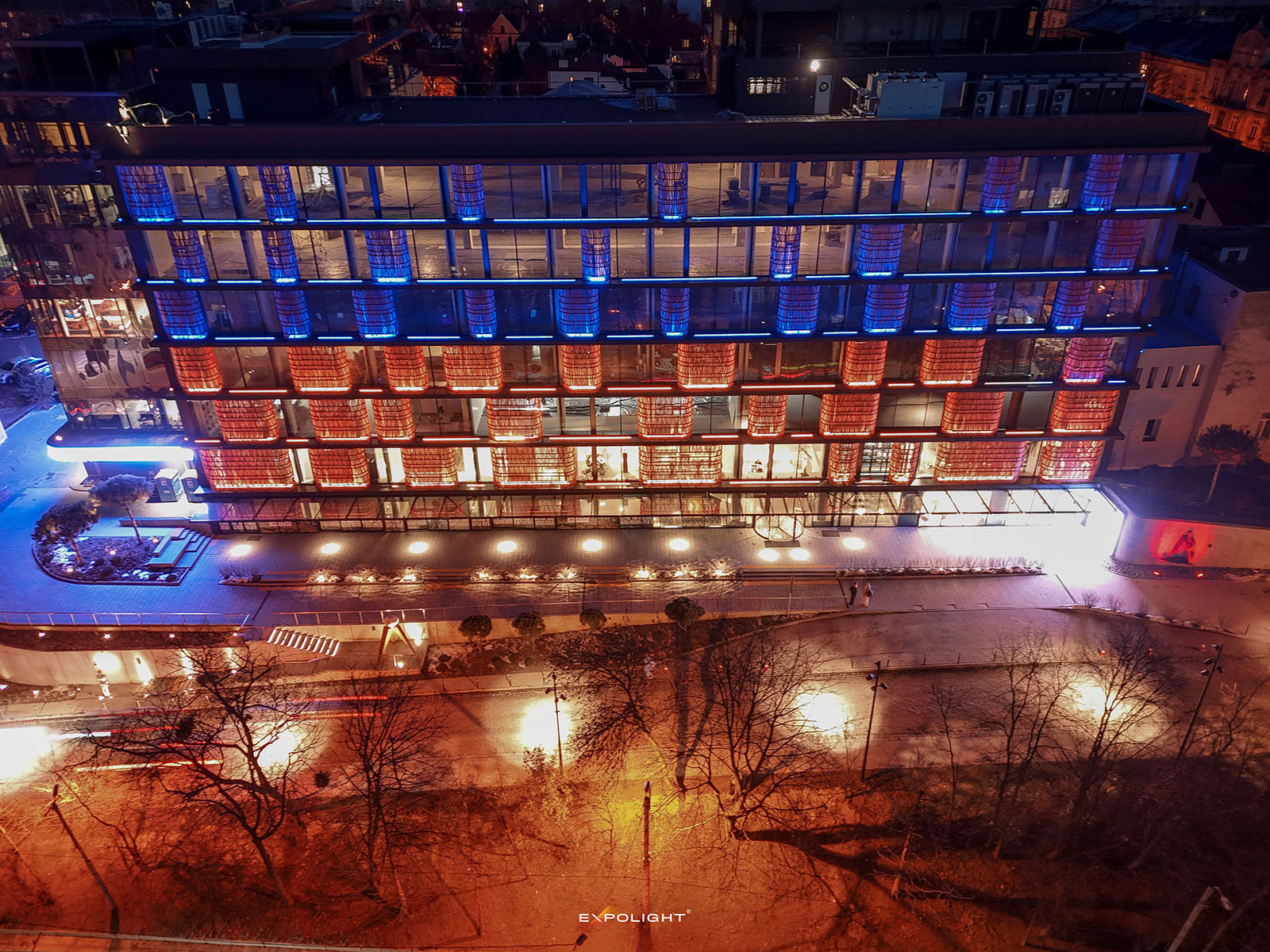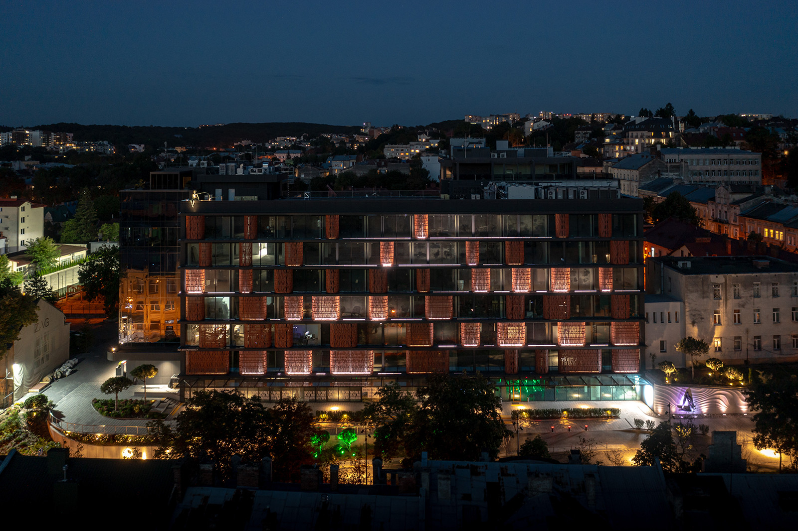 Цей підхід забезпечує не лише виразну контражурну підсвітку та медійні ефекти, а й акцентує окремі архітектурні елементи, додаючи інтерактивності й нових сенсів у сприйняття будівлі.