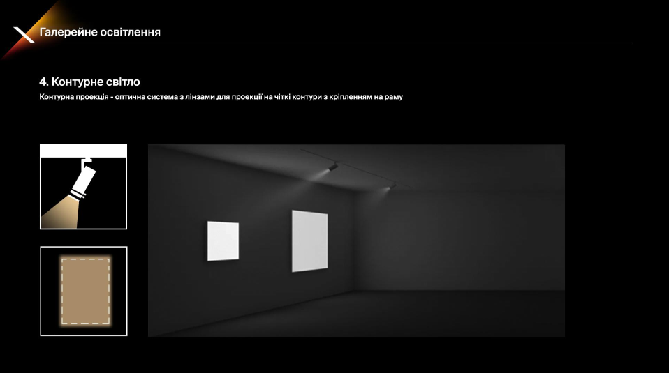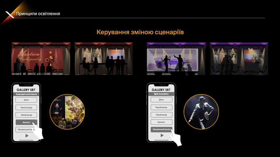 - Цифрове керування світлом через спеціалізований додаток з інтерфейсом для персоналу галереї.