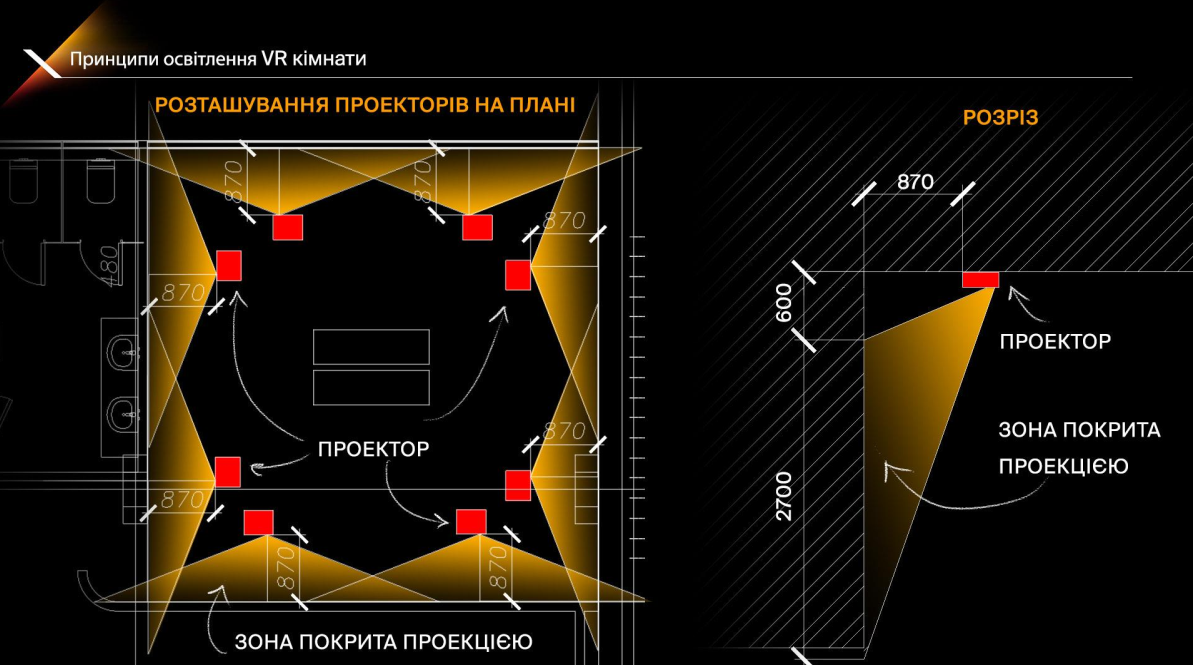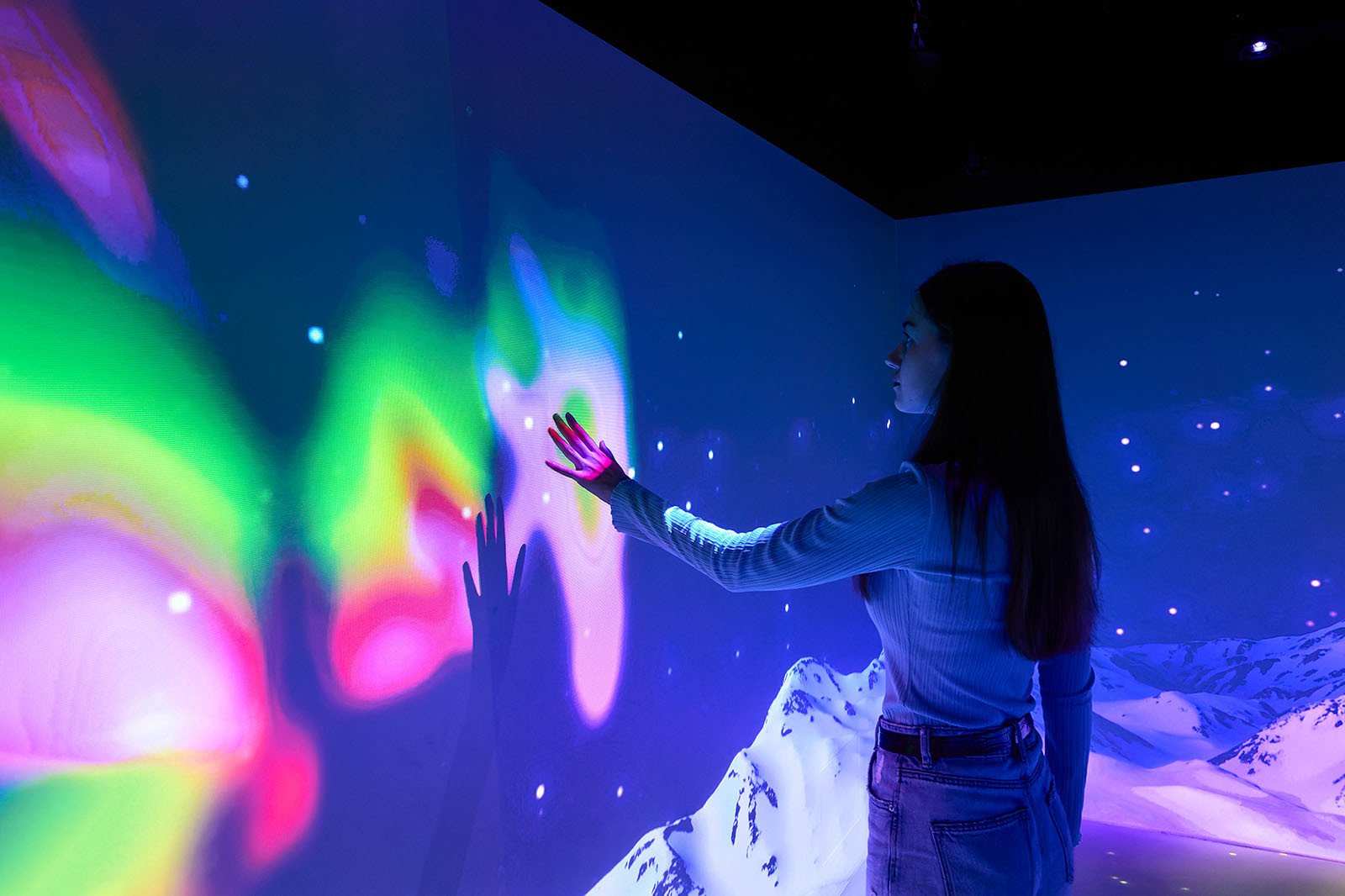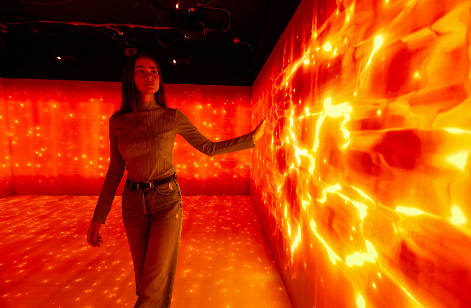 Тут інтегрованні інноваційні технології: за рахунок спец датчиків простір “відчуває” людину і відповідає їй динамічними візуальними змінами.